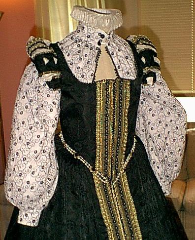 of embellishment down the front of the bodice and the front of the skirt.