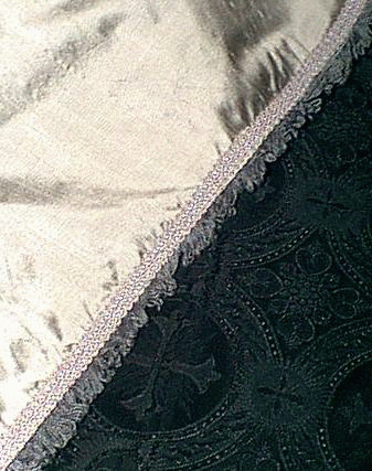 shoulder and bottom of the bodice have puffs of fabric caught with the