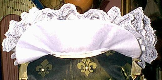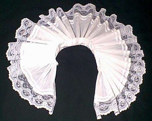 organza. Instead of hook and eyes on the ends to fasten the ruff,